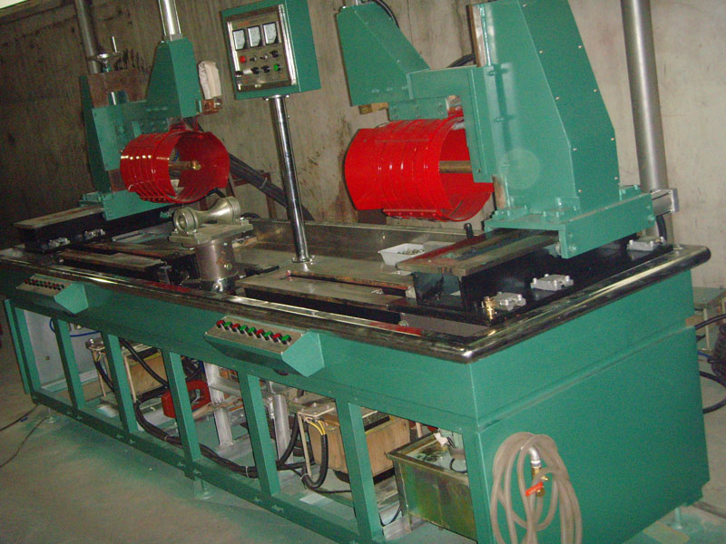 自動程序:工件輸送――進入探傷工位定位――右穿棒電極進入――銅芯棒進入――內夾緊,外夾緊――噴灑(內、外同時)――磁化――內、外夾緊松開――銅芯棒退回――右穿棒電極復位――工件上升――旋轉、觀察――旋轉停――工件下降――退磁――工件向前輸送――當另一頭進入磁化區時重復上面動作――下料